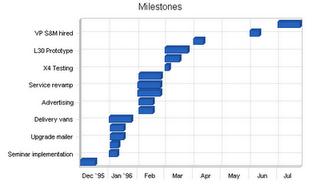 Our important milestones are shown on the following table. Row by row, they track the need to follow up on strategy with specific activities. Most of the activities on the list can be easily tied to our strategic goals of selling more service and enhancing the relationship with the customer.